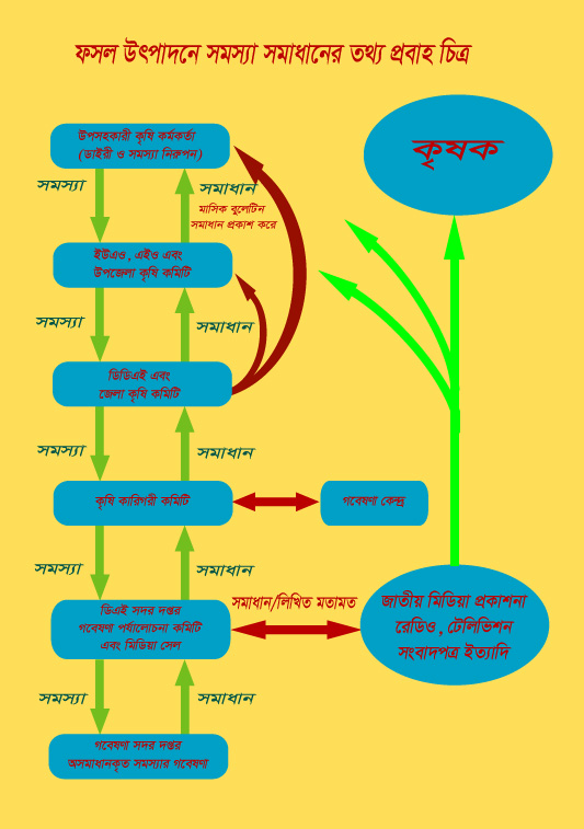 মাঠ পর্যায়ে ফসল উৎপাদনে চিহ্নত সমস্য ও সমাধানের প্রবাহ চিত্র